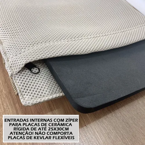 • Compartimento de Placas Compatível com placas balísticas de até 25x30 cm